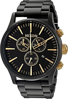 Amazon Com Nixon Sentry Chrono A3861041 00 Matte Black Gold Men S Watch 42mm Matte Black Gold Watch Case 23 20mm Matte Black Stainless Steel Band Clothing Shoes Jewelry